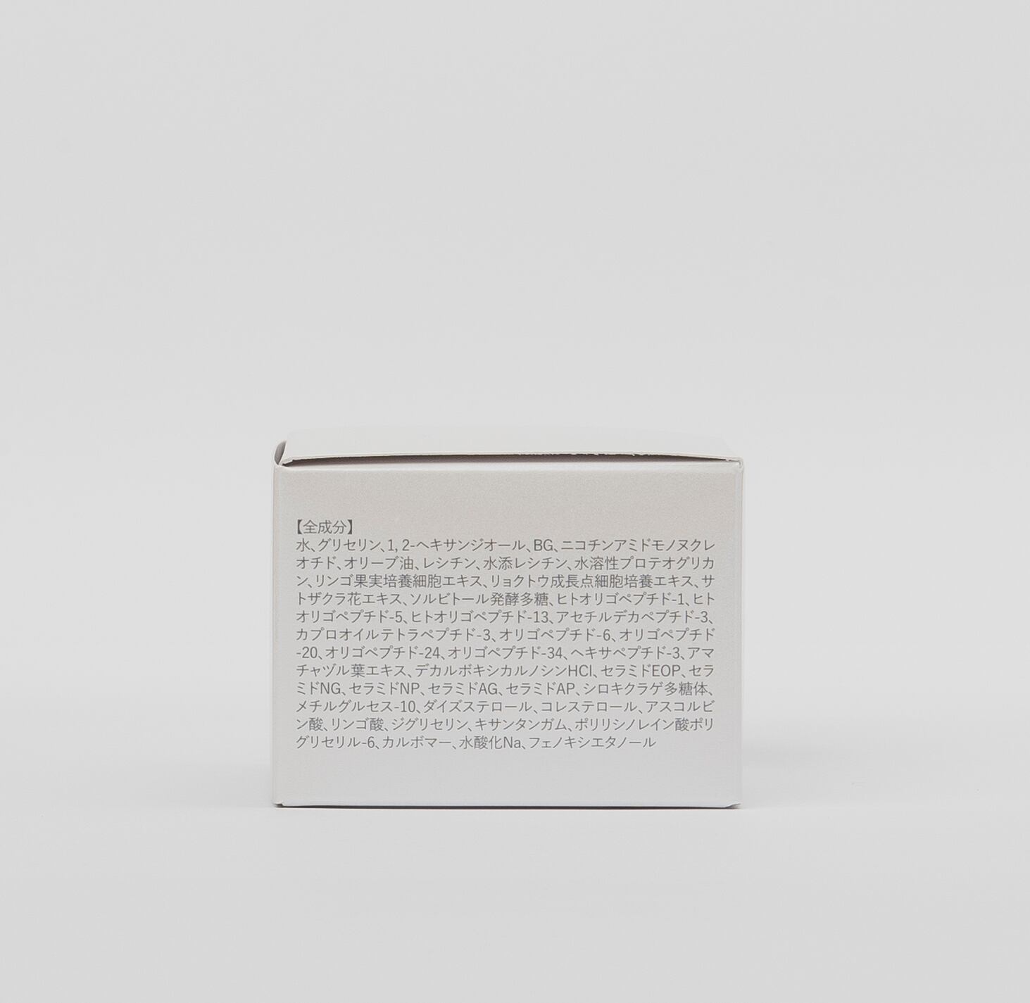 水、グリセリン、1, 2-ヘキサンジオール、BG、ニコチンアミドモノヌクレオチド、オリーブ油、レシチン、水添レシチン、水溶性プロ テオグリカン、リンゴ果実培養細胞エキス、リョクトウ成長点細胞培養エキス、サトザクラ花エキス、ソルビトール発酵多糖、ヒトオリゴペプチド-1、ヒトオリゴペプチド-5、ヒトオリゴペプチド-13、アセチルデカペプチド-3、カプロオイルテトラペプチド-3、オリゴペプチド-6、オリゴペプチド-20、オリゴペプチド-24、オリゴペプチド-34、ヘキサペプチド-3、アマチャヅル葉エキス、デカルボキシカルノシンHCl、セラミドEOP、セラミドNG、セラミドNP、セラミドAG、セラミドAP、シロキクラゲ多糖体、メチルグルセス-10、ダイズステロール、コレステロール、アスコルビン酸、リンゴ酸、ジグリセリン、キサンタンガム、ポリリシノレイン酸ポリグリセリル-6、カルボマー、水酸化Na、フェノキシエタノール
